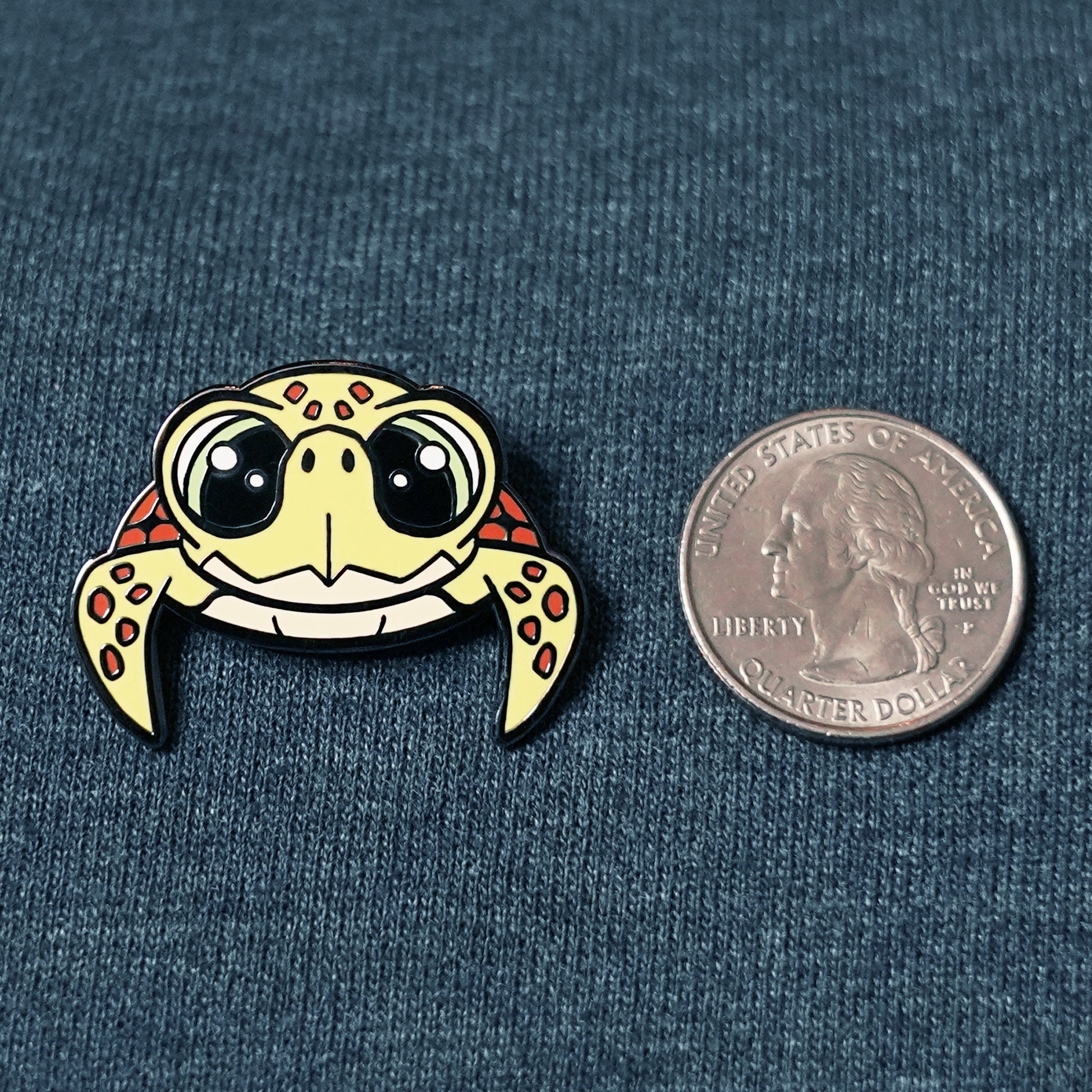Walter the Sea Turtle is a 1.25" hard enamel sea turtle pin with black nickel plating, a rubber clutch, and our logo stamped on the back. Also Included on the backing card is Walter's story and collector number (#92)